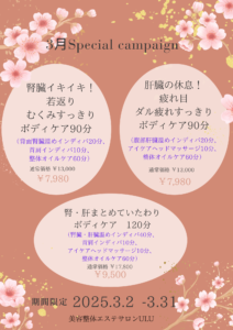 3月のキャンペーンでは肝臓と腎臓に活力を与えるボディケアをご用意しました!